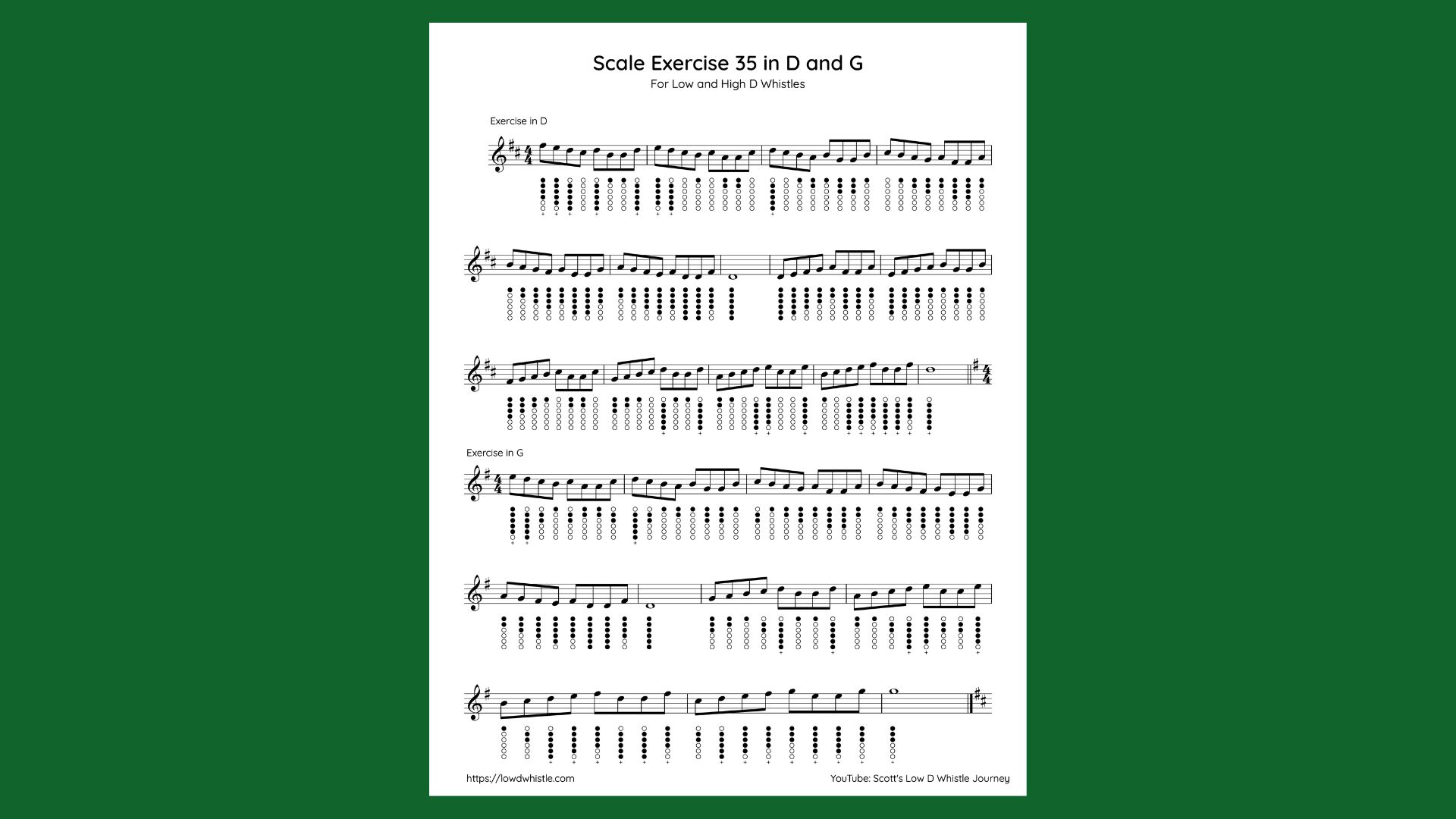 Music and Tabs (Play along with Scott)In this video I introduce scale exercise 35 for low and high D whistles. This exercise is designed to help us work pace, dexterity, and ornamentation as we play phrasings from a reel. Join me as we think through this important topic and take advantage of this scale exercise.