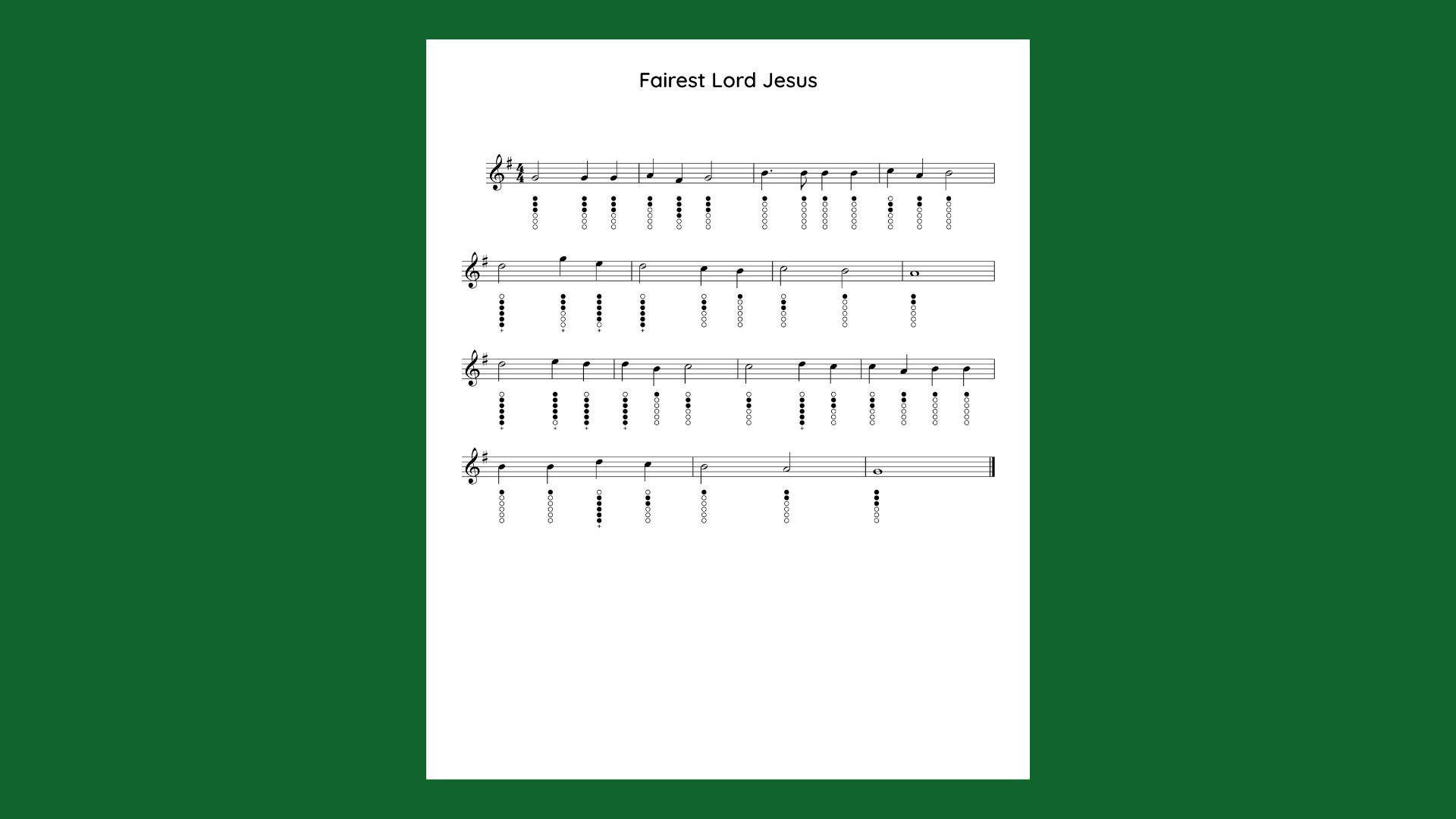 Music and Tabs (Play along with Scott)In this video I introduce the hymn Fairest Lord Jesus for us to play on our low and high D whistles. Please join me as we walk through the tune, talk about potential challenges, think through ornamentation and expression, as well as the history of the tune.